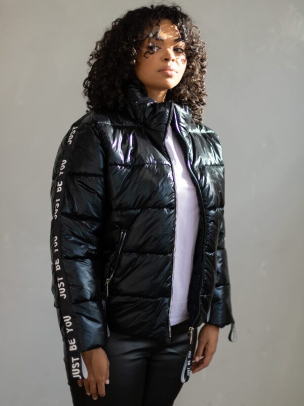 Bomberka czarna pikowana w pasy, ocieplana- mat