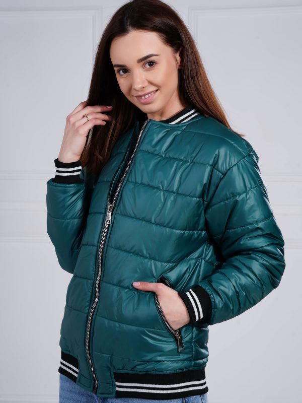 Bomberka butelkowa zieleń pikowana w pasy, ocieplana - mat