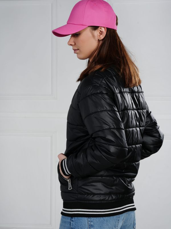 Bomberka czarna pikowana w pasy, ocieplana- mat
