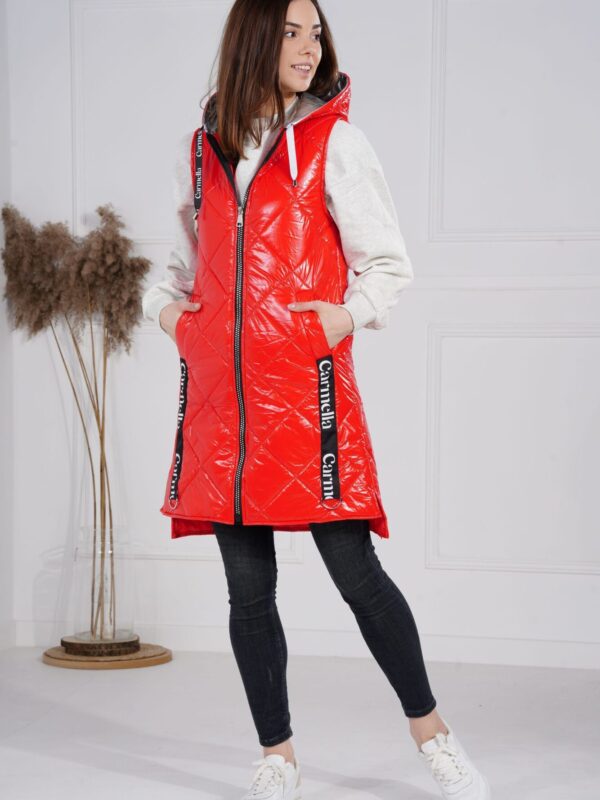 Długa czerwona pikowana kamizelka typu błysk + torba gratis